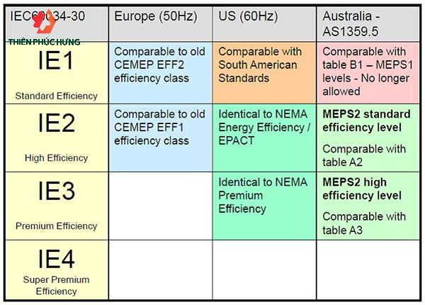 Bên cạnh IE3, còn có các cấp hiệu suất khác mà bạn có thể gặp: