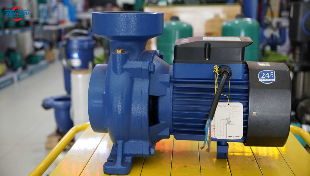 Nguyên lý: Khi máy hoạt động, cánh quạt quay tạo ra lực ly tâm hoặc áp suất chân không để hút nước vào và đẩy ra ngoài với lưu lượng và cột áp lớn.