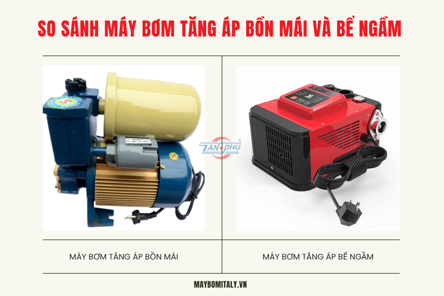 | Tiêu Chí | Máy Bơm Tăng Áp Bồn Mái | Máy Bơm Tăng Áp Bể Ngầm |