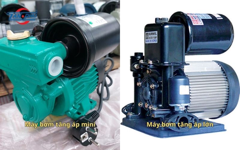 | Tiêu chí | Bơm tăng áp mini | Bơm tăng áp lớn |