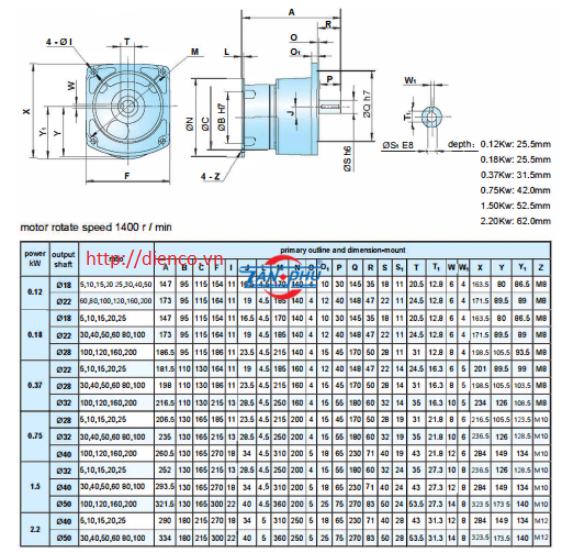 Đầu giảm tốc kiểu mặt bích hiệu TRANSMAX Model: G3FS