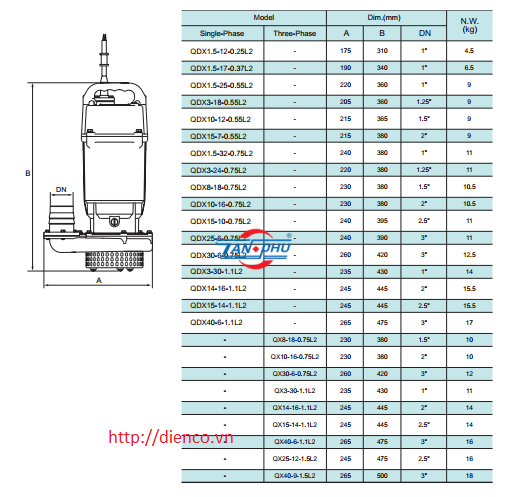 Máy bơm chìm nước thải hiệu SHIMGE Model: QDX-L