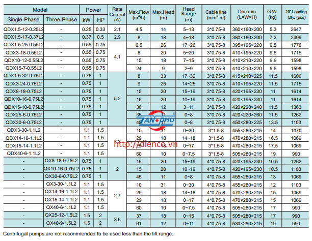 •  Bơm chìm nước sạch