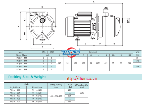 • Cánh bơm bằng nhựa, hút sâu tối đa 7m. Lưu lượng lớn, đẩy cao