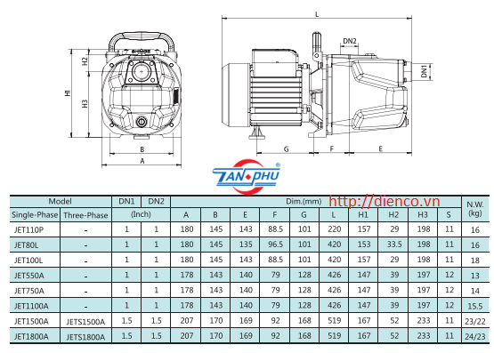 • Dòng bơm tự mồi, có thể hút sâu tối đa 9m, cánh bơm bằng nhựa, hiệu suất cao. Dễ lắp đặt và bảo dưỡng.