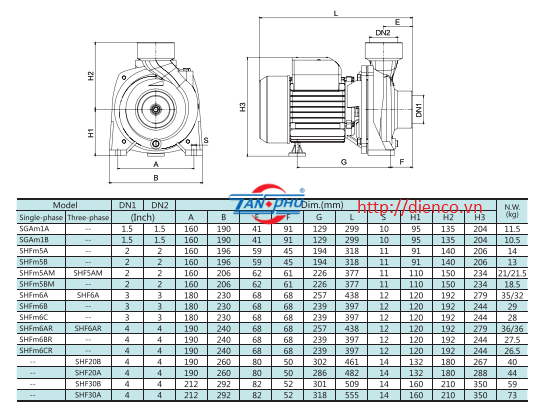 Máy bơm lưu lượng lớn hiệu SHIMGE Model: SHFm5AM/SGAM1A