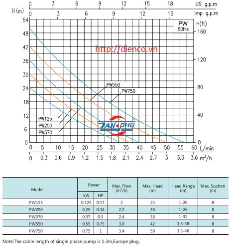 • Hút sâu tối đa 8m, cánh bơm bằng Đồng thau.