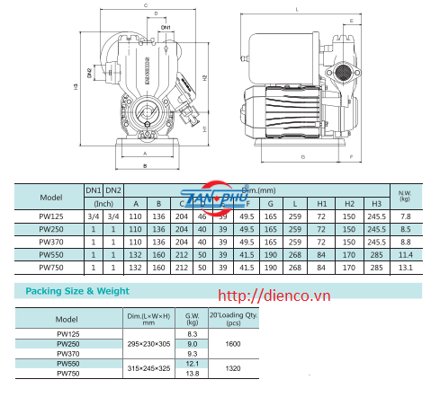 • Độ ồn thấp, điều khiển và bảo vệ thông minh, phớt cao cấp.